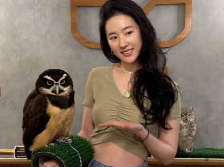 - 刘亦菲与猫头鹰同框,素颜松弛美成风景线