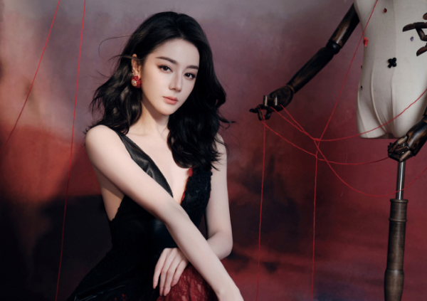 - 迪丽热巴黑色深V裙,媚骨天成自带焦点