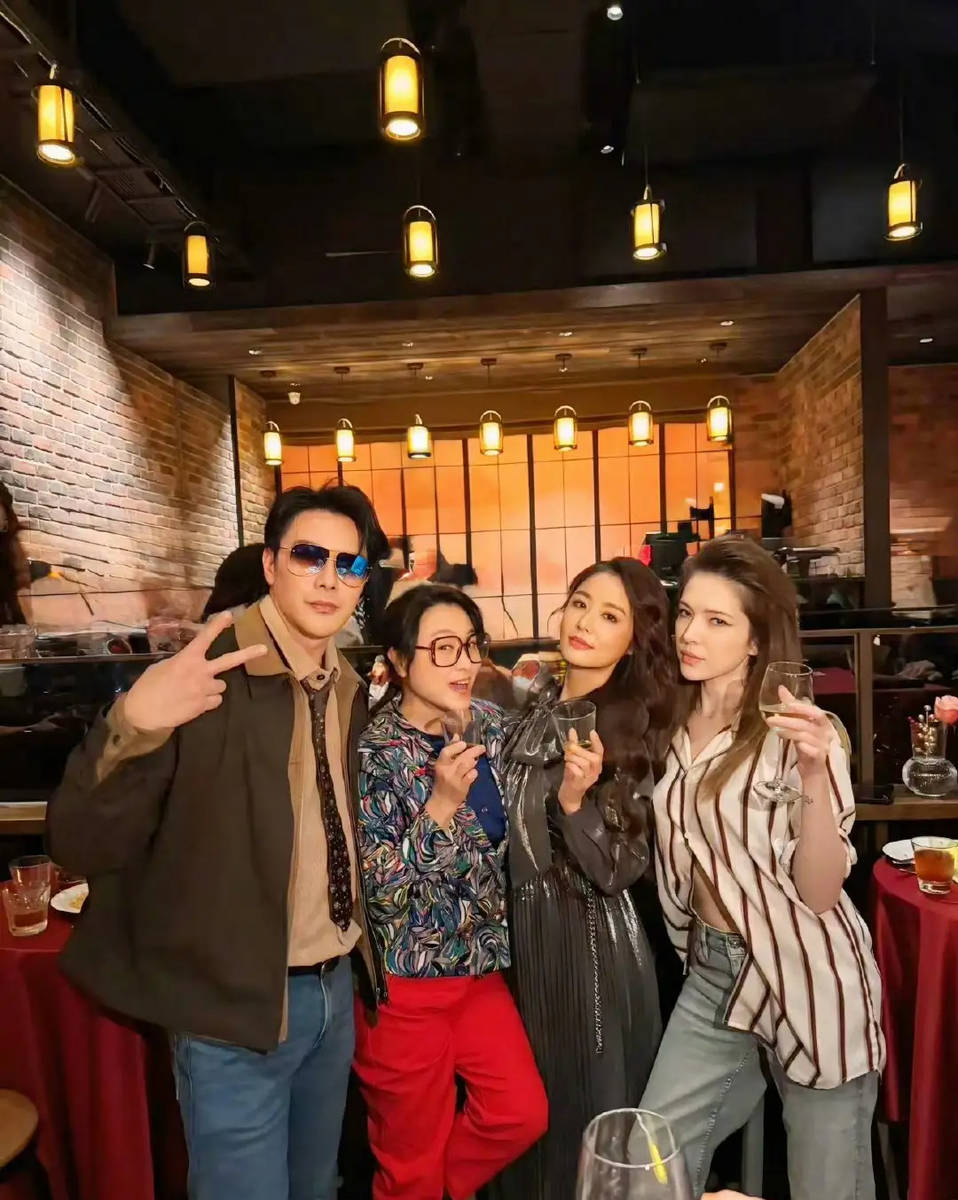 除了夫妻间的甜蜜互动,林心如的闺蜜团也全员齐聚,为她送上祝福。徐若瑄身着绿色丝绒旗袍,复古华丽;许玮甯穿条纹衬衫,休闲中透着精致,刚生完宝宝的她身材已然恢复绝佳[5];林熙蕾身着金色上衣,搭配牛仔裤,气质出众,三位50+女神同框贴脸合影,岁月似乎从未在她们身上留下痕迹,画面十分养眼。好友们举杯同庆,摆出各种可爱pose,畅谈过往、共话美好,现场欢声笑语不断,尽显深厚情谊。