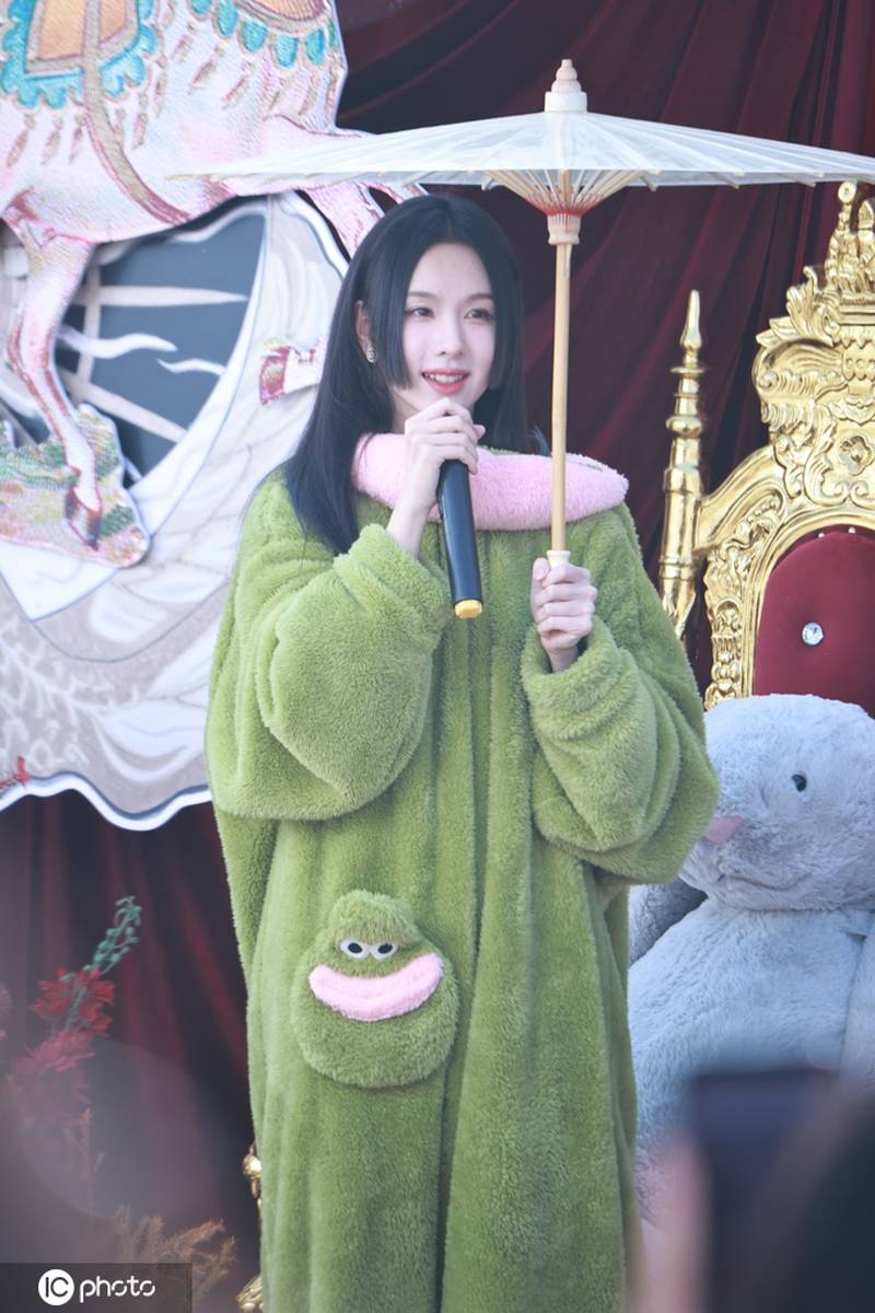 当日,陈都灵的亮相成为全场最大焦点,解锁双重造型反差感拉满,萌化众人。她先是身着一身绿色毛绒玩偶服登场,呼应新剧“玩偶世界”的核心设定,圆滚滚的造型自带可爱buff,因头套偏大,打招呼时频频抬手扶着,懵懂又俏皮,被网友调侃“被粉丝‘骗’穿玩偶服,全场只有她当真了”,尽显软萌气质。随后,她换上剧中角色造型,黑长直公主切刘海搭配冷感苍白妆容,坐在轮椅上,抬眼间露出狡黠笑容,精准还原了原著中高智商腹黑少女“白幼薇”的病娇特质,被媒体和原著党一致称赞为“天选白幼薇”。