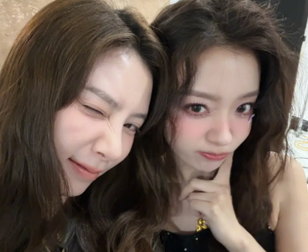 二人的互动更是甜度超标,尽显闺蜜间的亲昵无间。有的照片中,两人并肩而立,脑袋轻轻相靠,眼神同步看向镜头,嘴角挂着同款甜笑,默契十足;有的则俏皮搞怪,对着镜头比出可爱手势,挤眉弄眼的模样灵动又讨喜,完全卸下了镜头前的拘谨,露出了最真实的模样。还有一张近距离合照中,两人贴脸同框,笑容灿烂,眼底的欢喜藏不住,仿佛有说不完的悄悄话,满屏都是少女间的美好与治愈。