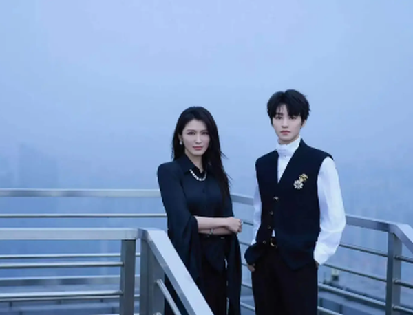 同步曝光的天台大片中,两人以全黑酷飒造型出镜,在城市高空的冷调氛围里,复刻剧中的悬疑感与张力。王俊凯身着白衬衫搭配黑色马甲,少年感与沉稳气质兼具;徐洁儿一袭黑色长裙,长发披肩气场强大,时而撑伞并肩、时而扶肩对视,眼神互动满是故事感。黑伞、面具、金属栏杆等元素,精准呼应《重生之门》的视觉符号,从“生死对峙”变为“暖心护航”,戏外的姐弟情谊温暖又治愈。